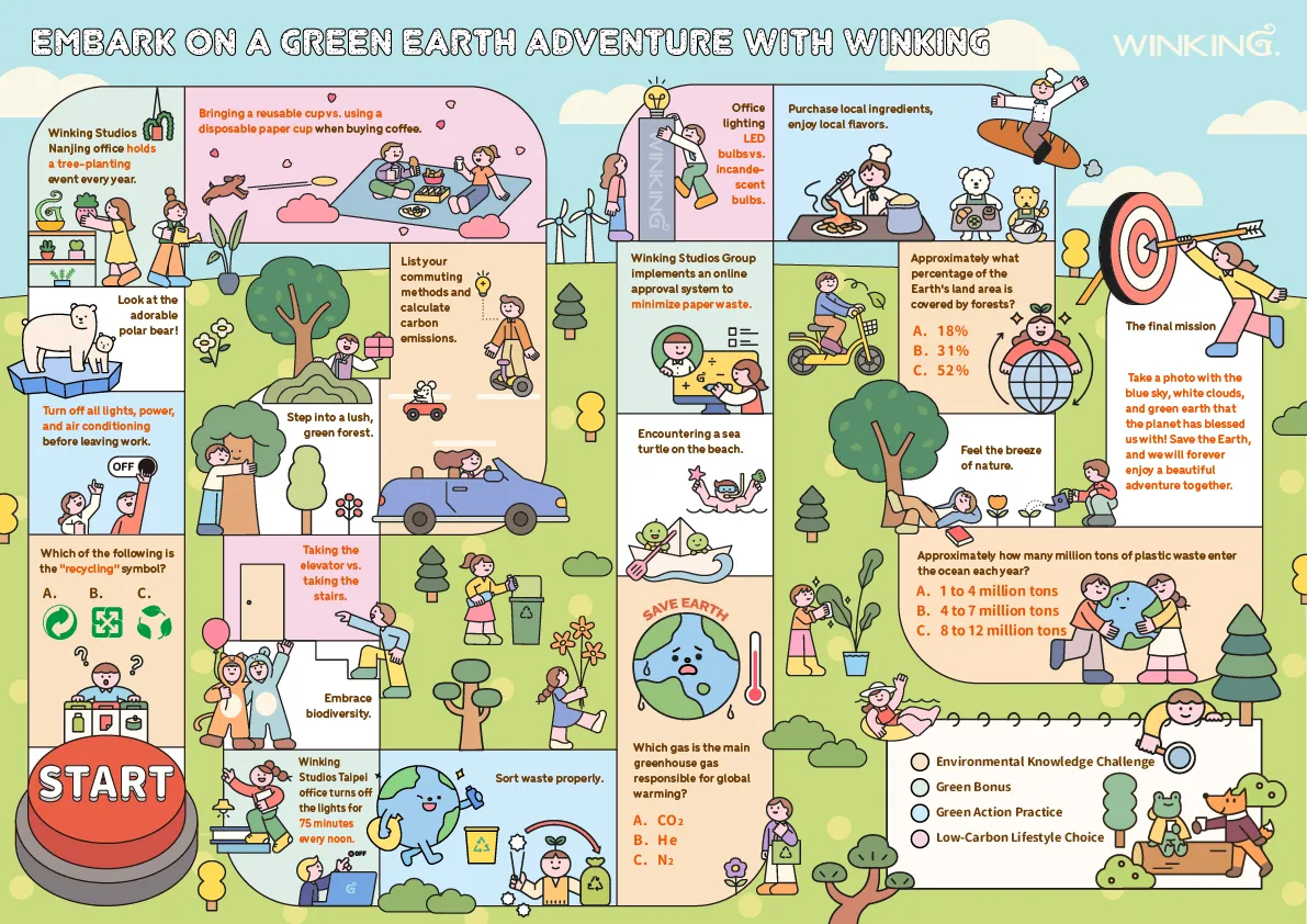 同时,我们响应世界地球日,在公司内部规划互动式环保参与活动,通过闯关卡的设计,引导同仁以实际行动理解环境议题,提升对可持续议题的参与度与认同感。